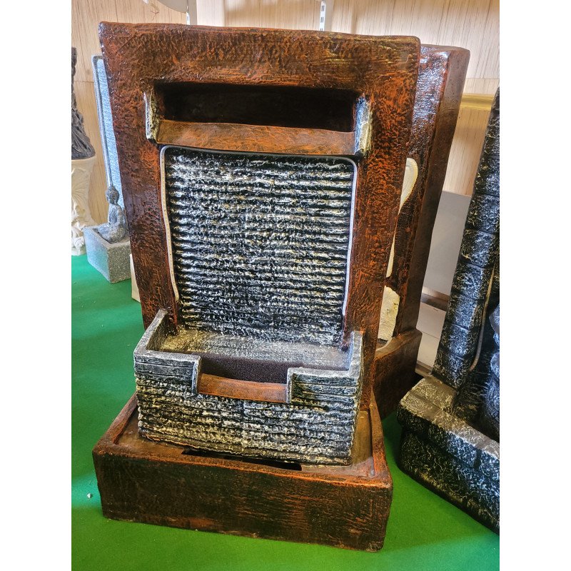 Tiered garden fountain with LED. Durable resin for patio and backyard.